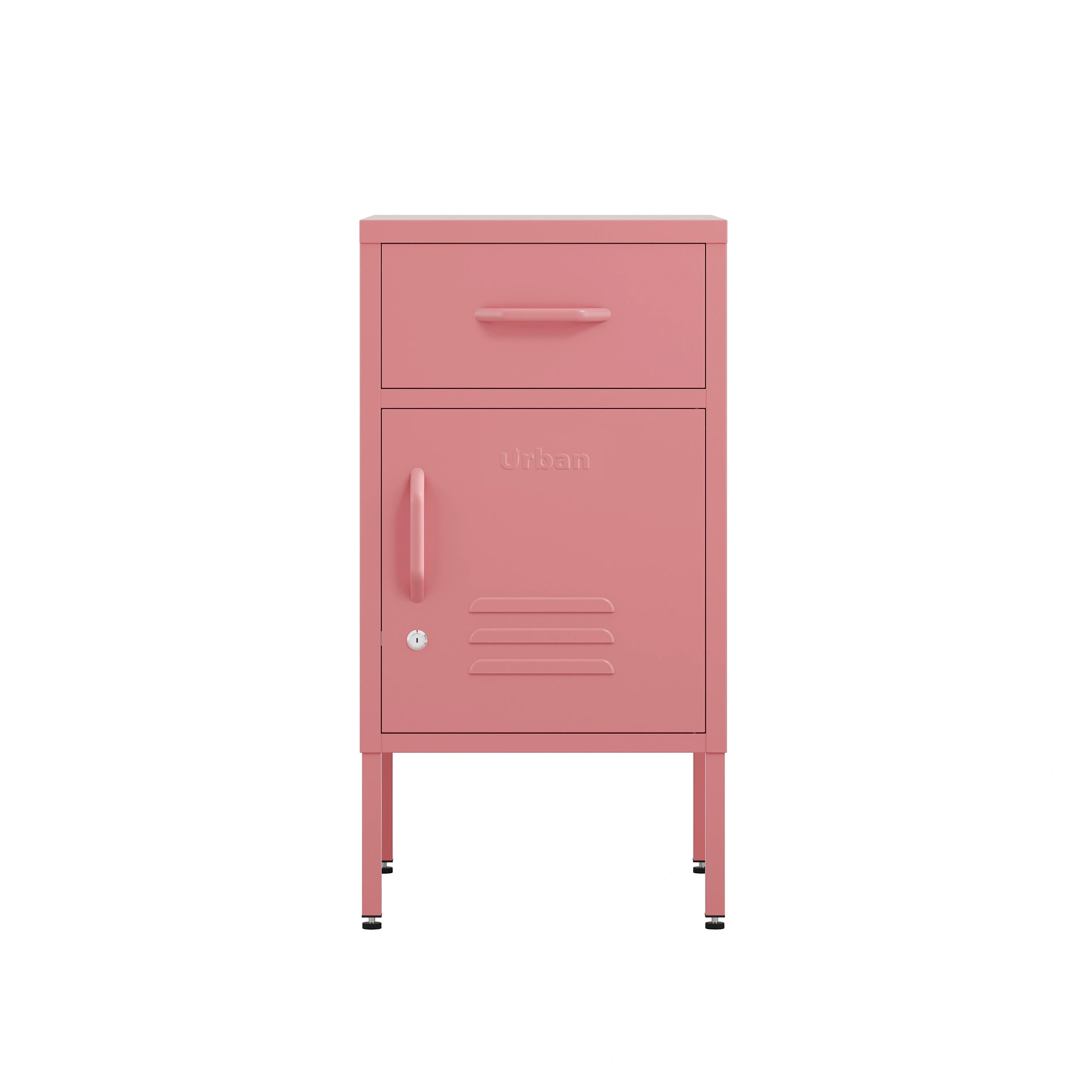 • Metal single door locker side table powder coated in Flamingo