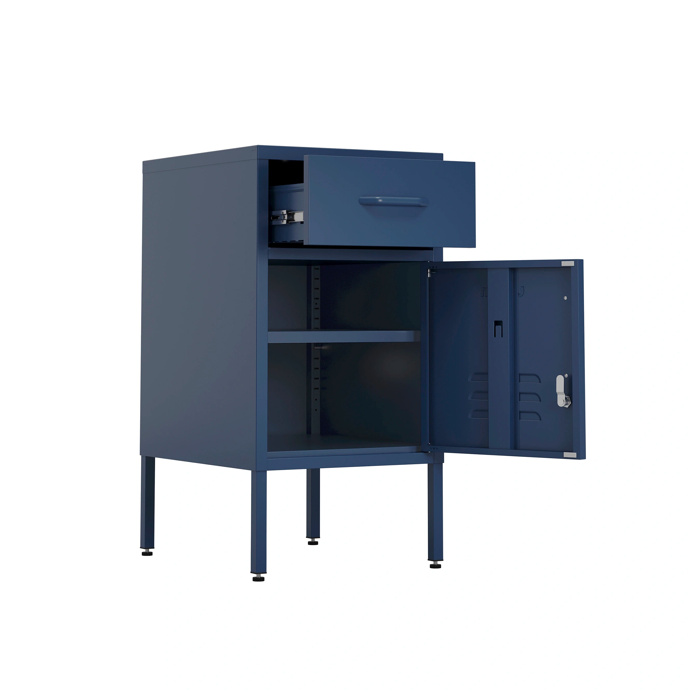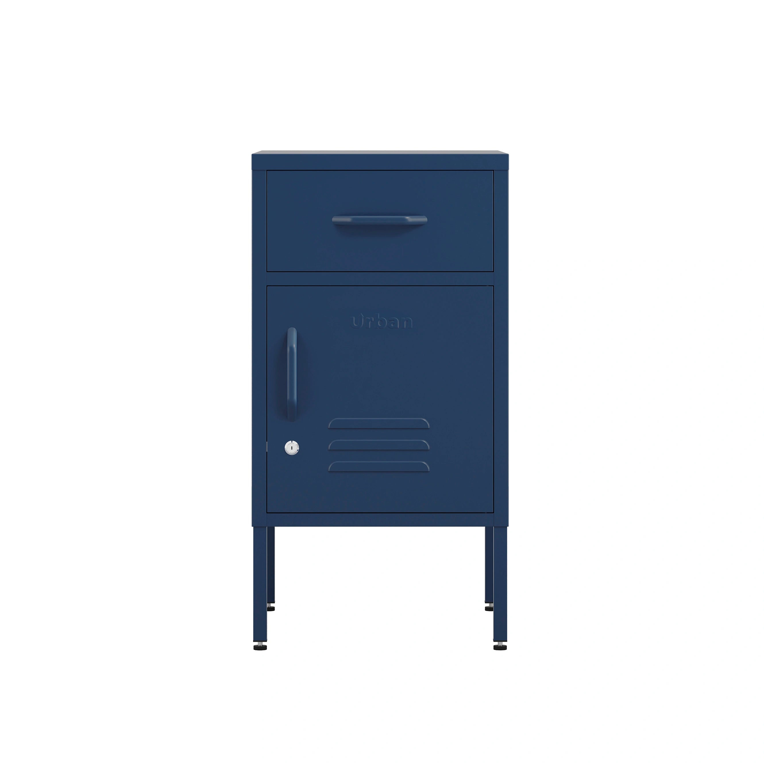 • Metal single door locker side table powder coated in Navy