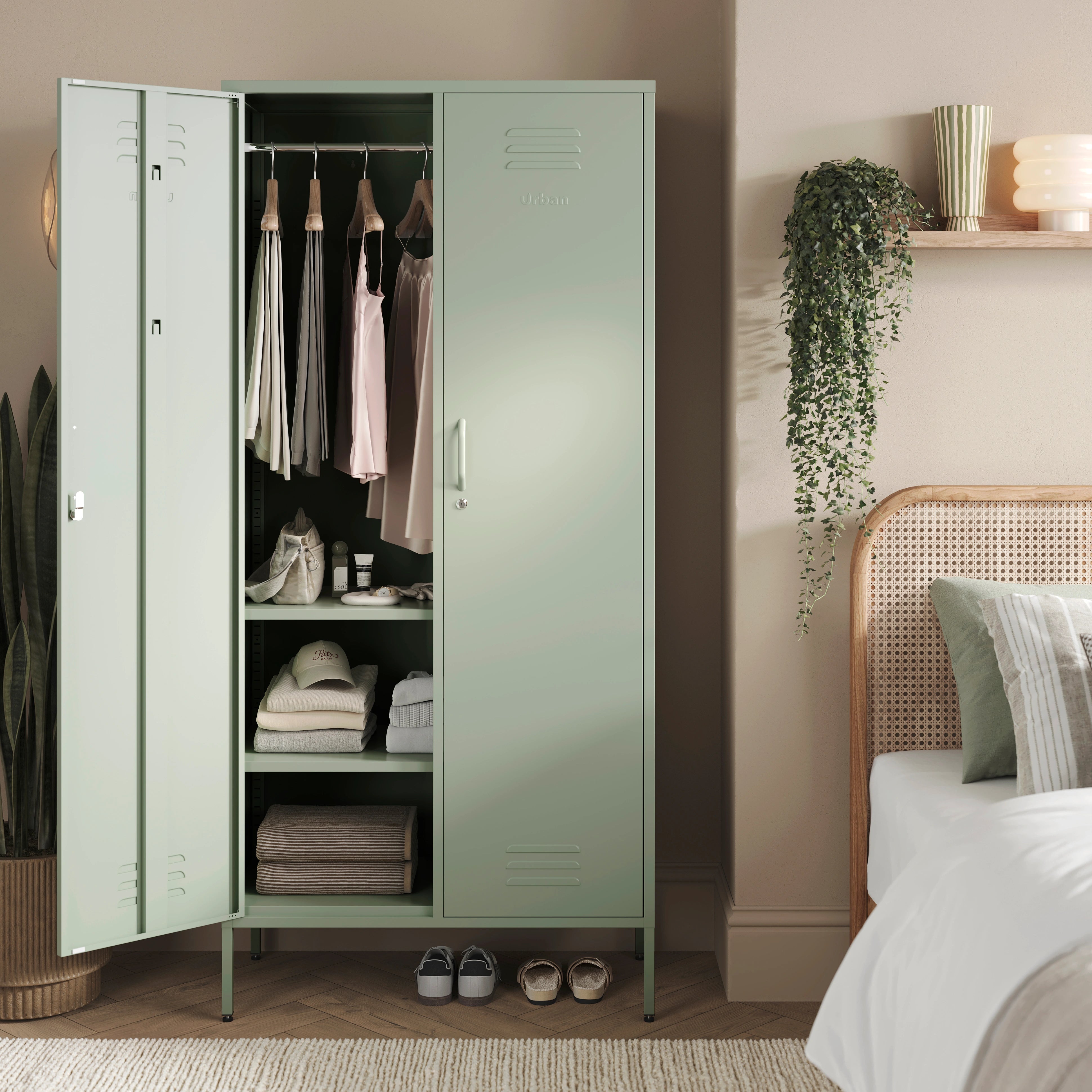 Add a touch of colour to your home with the Sage Green Chelsea locker. This two-door wardrobe locker offers ample space to neatly store your clothes or accessories, ensuring your space stays organised and clutter-free. The calming Sage Green finish brings a sense of serenity, effortlessly blending with earthy tones or neutral palettes. Practical yet stylish, The Chelsea locker features lockable doors for added security and adjustable feet for stability on uneven floors. Ideal as a bedroom locker or office locker, this Sage Green locker wardrobe is both functional and stylish.