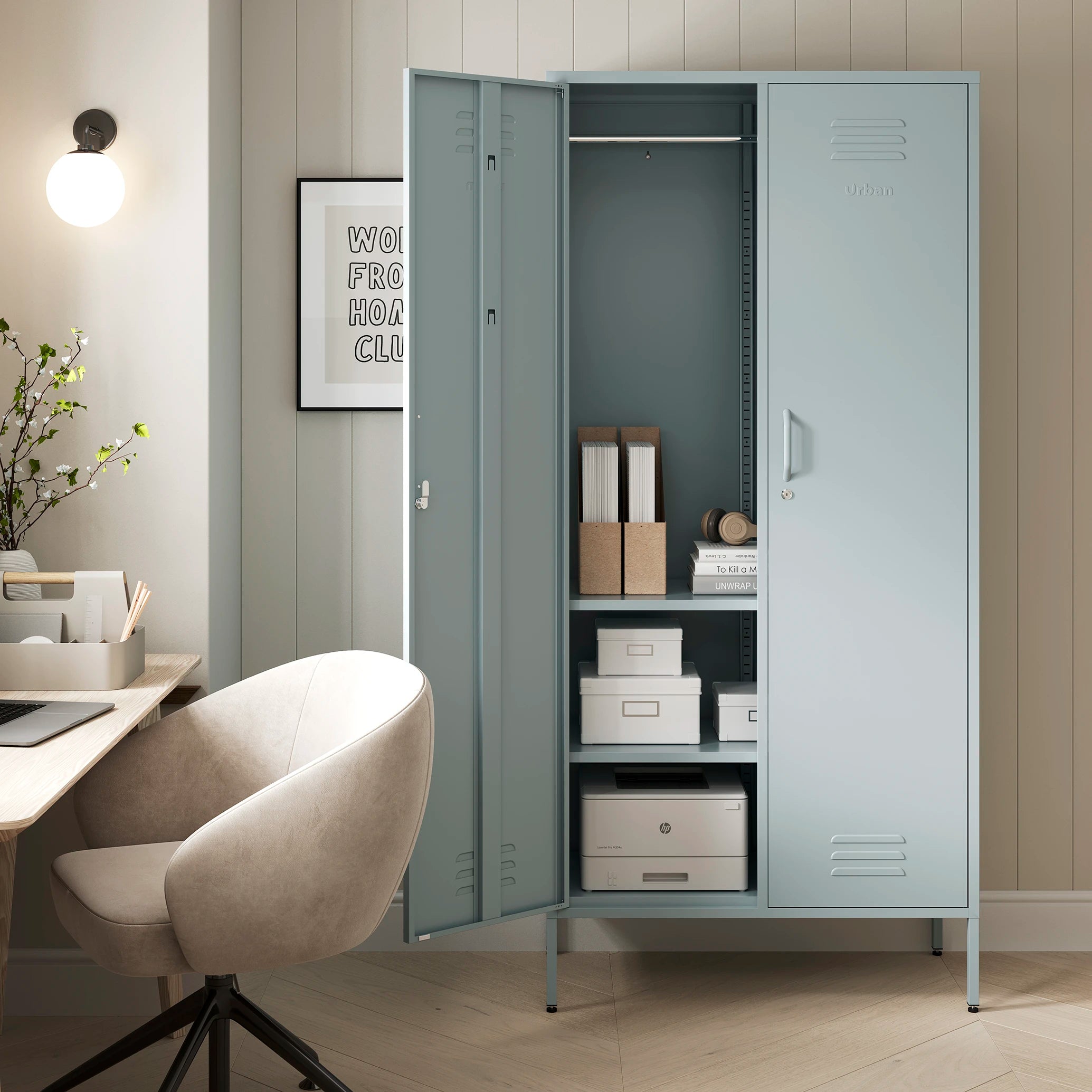 Add a pop of pastel with the Sky Blue Chelsea locker. Designed with two spacious doors, this wardrobe locker offers practical storage for clothes, accessories, or essentials, keeping your space tidy and organised. The soft Sky Blue shade brings a soothing, airy vibe, making it an ideal bedroom locker or for use in nurseries. With lockable doors to keep your belongings secure and adjustable feet for added stability, this Sky Blue locker is both stylish and functional, making it an ideal choice for any home.
