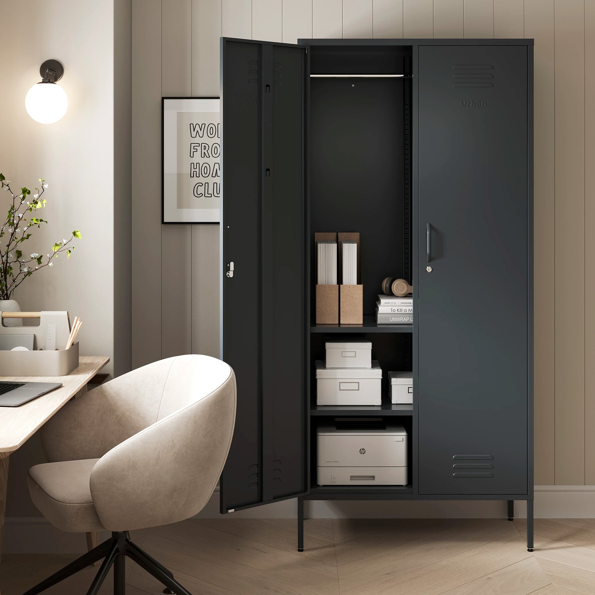 - Metal double door locker wardrobe powder coated in Slate Grey