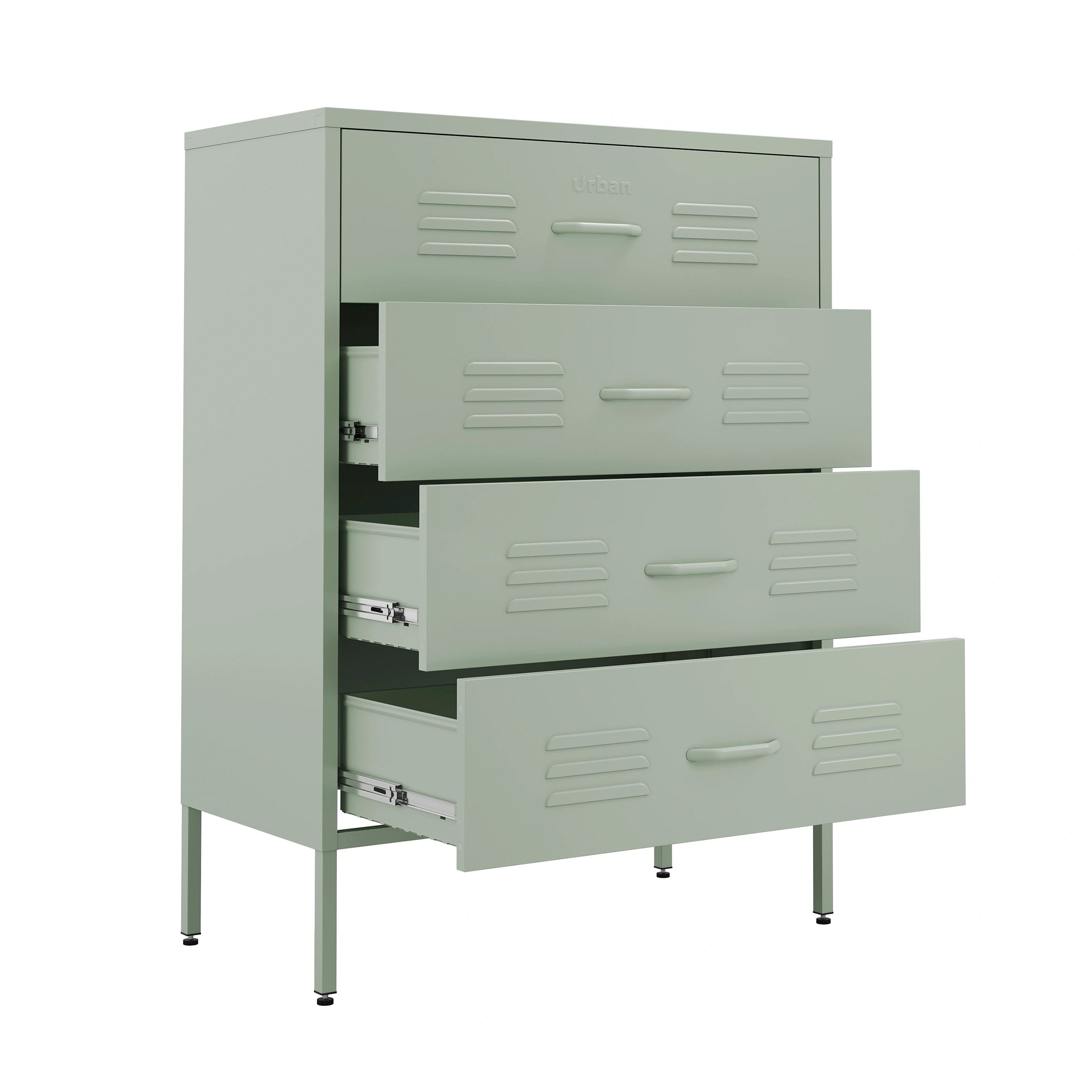The Sage Green Harrow metal drawer locker combines a fresh, pastel tone with practical storage. This four-drawer locker is perfect for keeping clothes, linens, or everyday essentials neatly tucked away, while the smooth-gliding metal drawers offer effortless access. Locker drawer vents promote airflow, keeping stored items fresh, while adjustable feet and wall-mounting holes provide stability and flexibility. Whether styled as a modern bedroom drawer locker or a sleek office storage unit, this sage green locker adds a touch of charm to any space.
