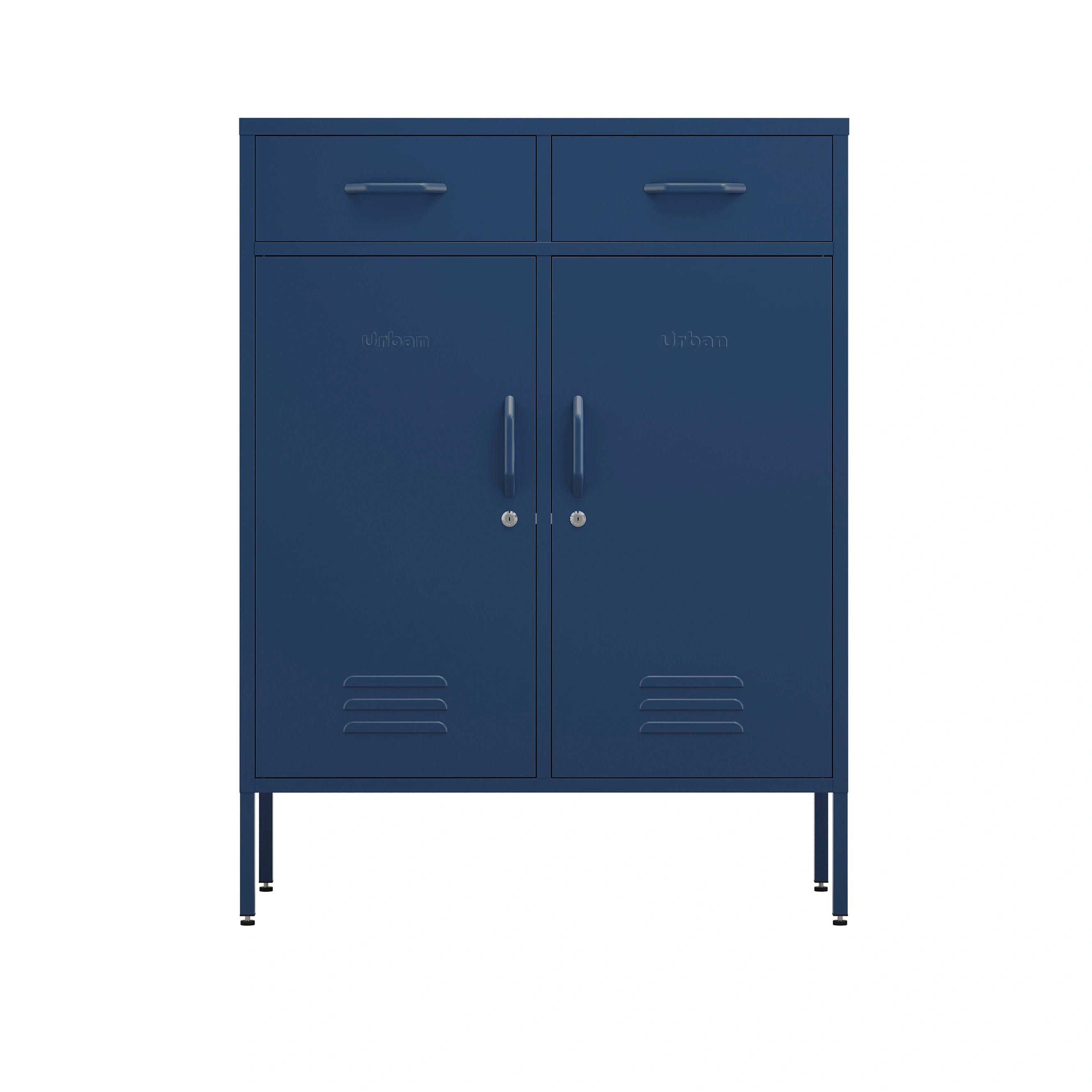 Metal storage locker with 2 doors and 2 drawers in navy blue