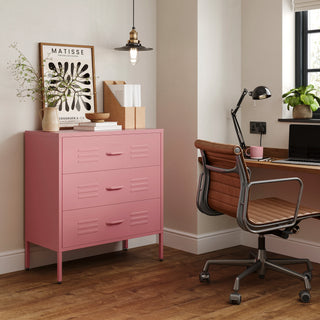 Create a fresh and organised look with the Lambeth locker. This metal three-drawer locker offers ample storage space and a soft pastel tone that brightens any room. The drawer vents ensure your clothes stay fresh. Additional features include wall mounting holes and adjustable feet for stability and convenience. Whether used as a bedroom locker or office locker, the Lambeth locker drawer adds a peaceful yet practical vibe to