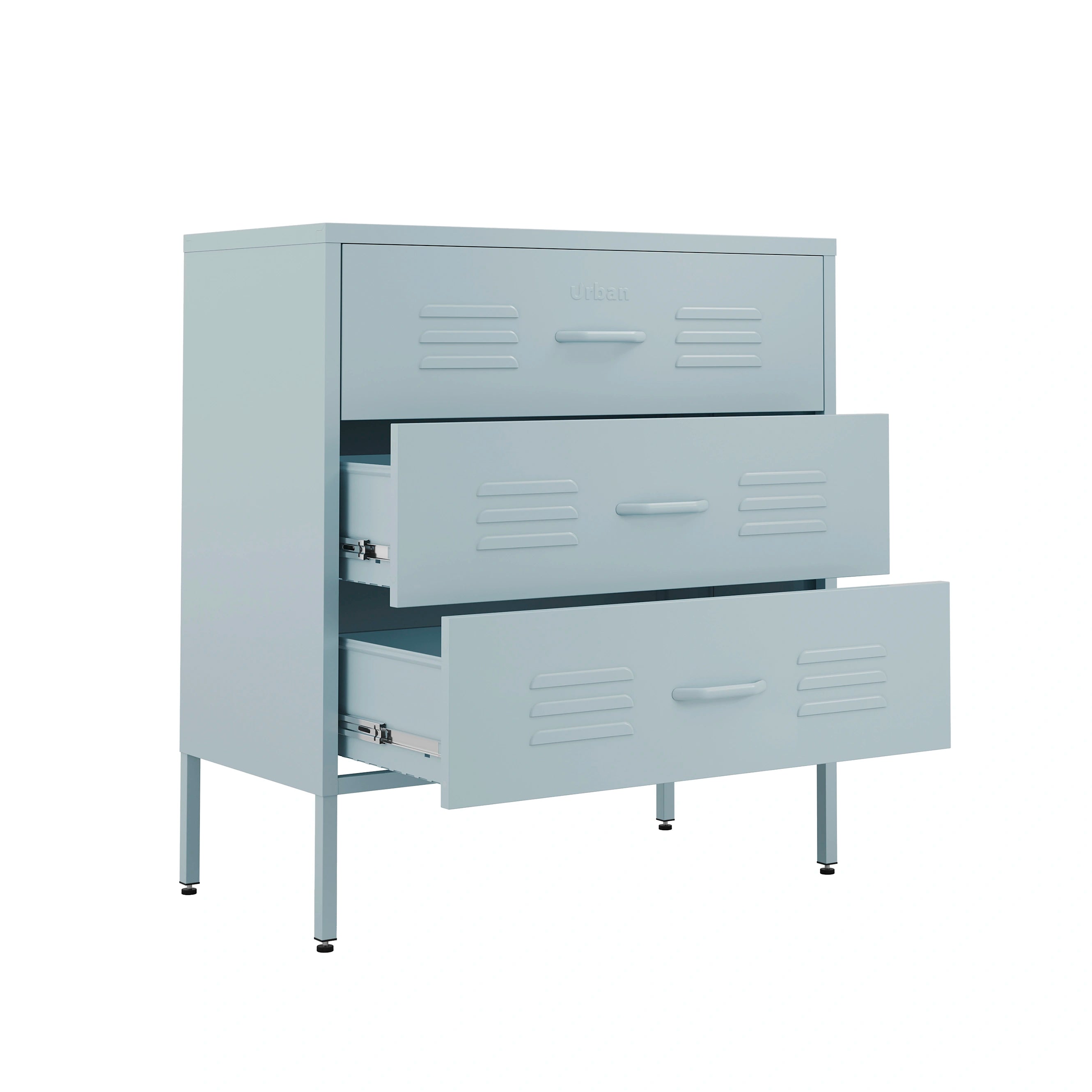 Create a fresh and organised look with the Sky Blue Lambeth locker. This metal three-drawer Sky Blue locker offers ample storage space and a soft pastel tone that brightens any room. The drawer vents ensure your clothes stay fresh. Additional features include wall mounting holes and adjustable feet for stability and convenience. Whether used as a bedroom locker or office locker, the Sky Blue Lambeth locker drawer adds a peaceful yet practical vibe to your home.