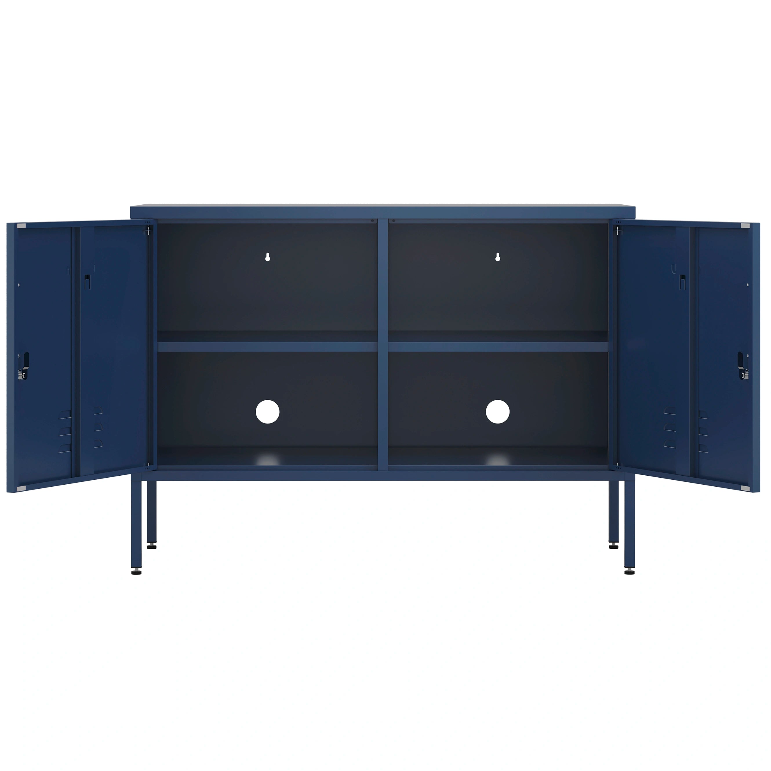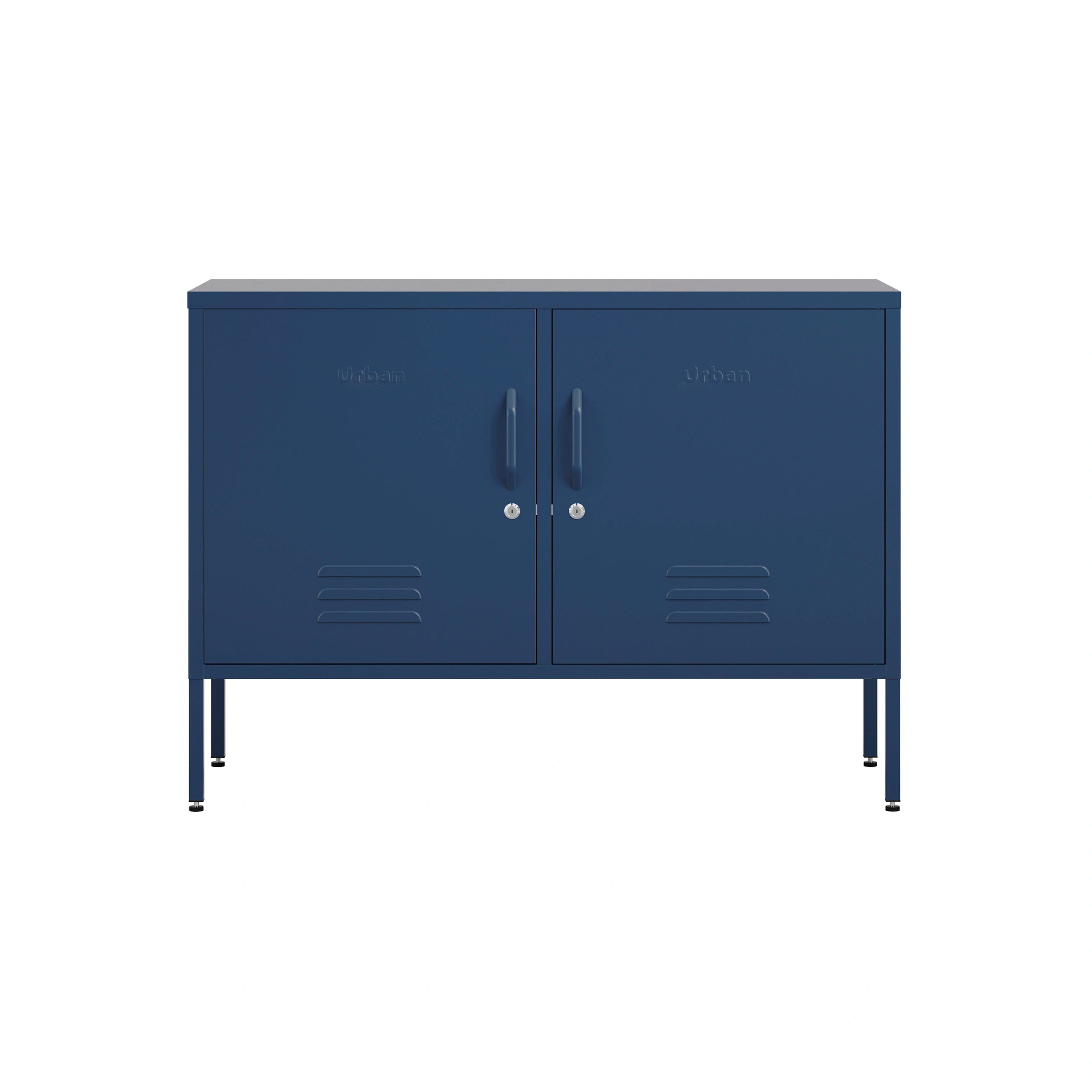 The Oxford, a wide, short 2 door metal locker in navy blue.