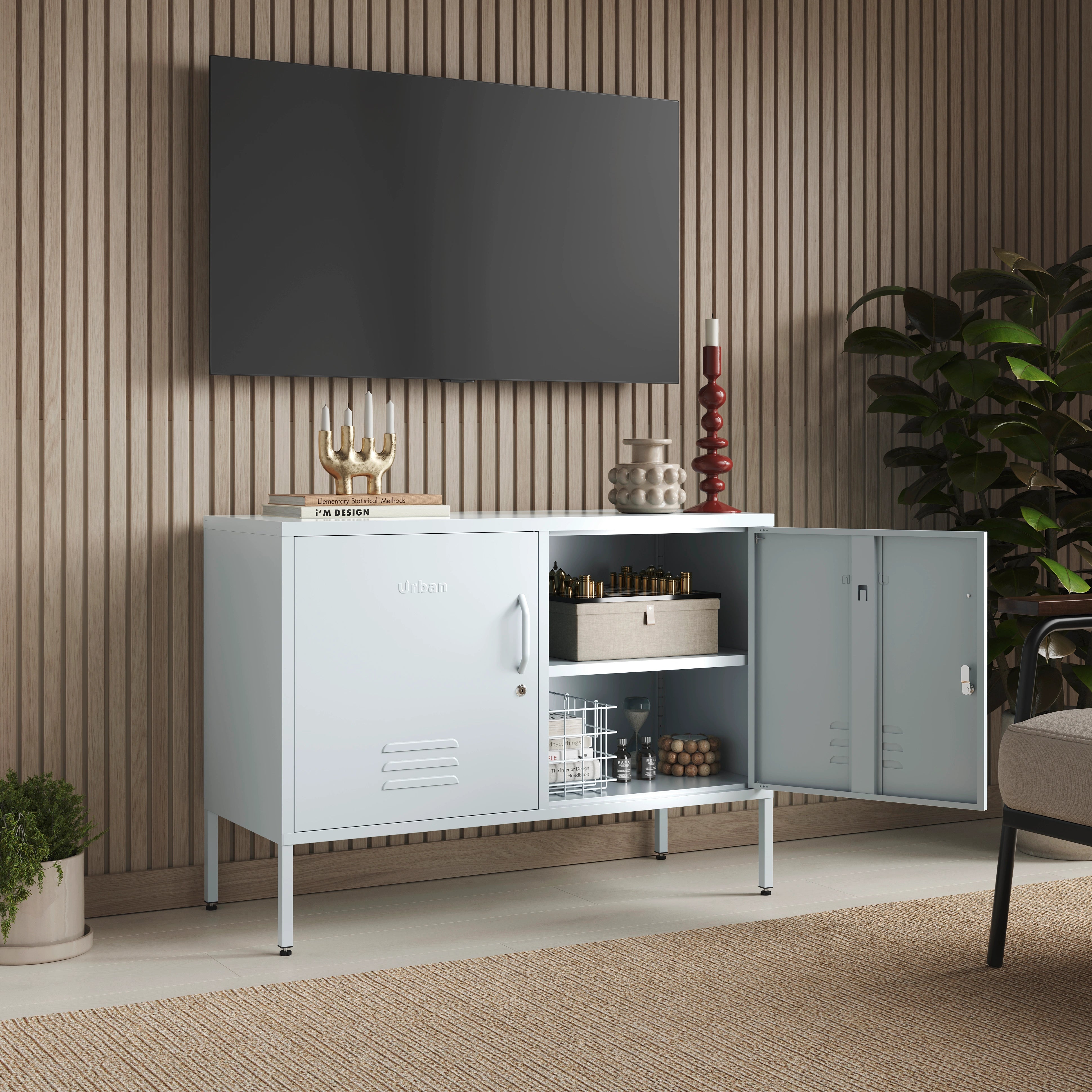• Metal double door locker TV Stand powder coated in Sky Blue