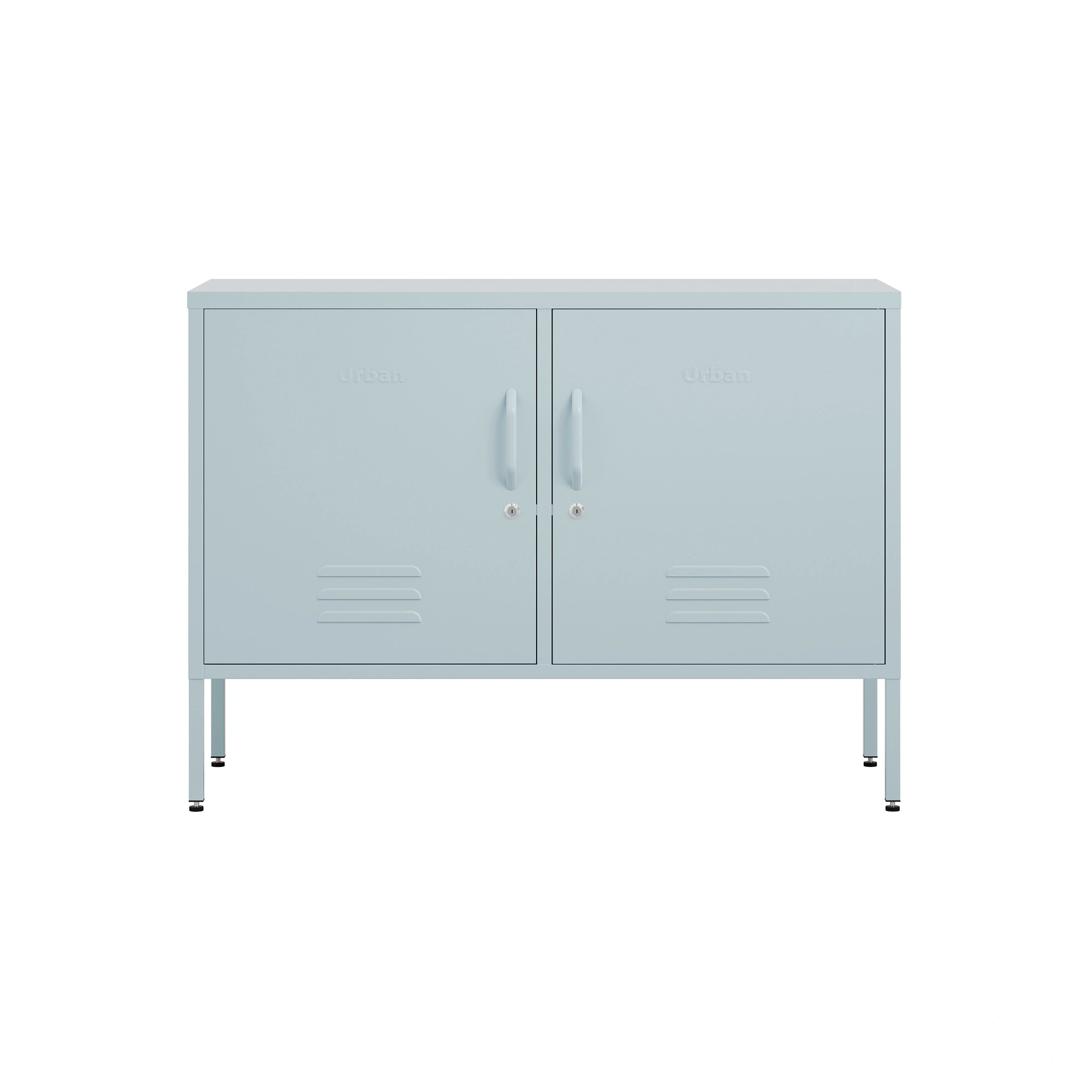 The Oxford, a wide, short 2 door metal locker in sky blue.