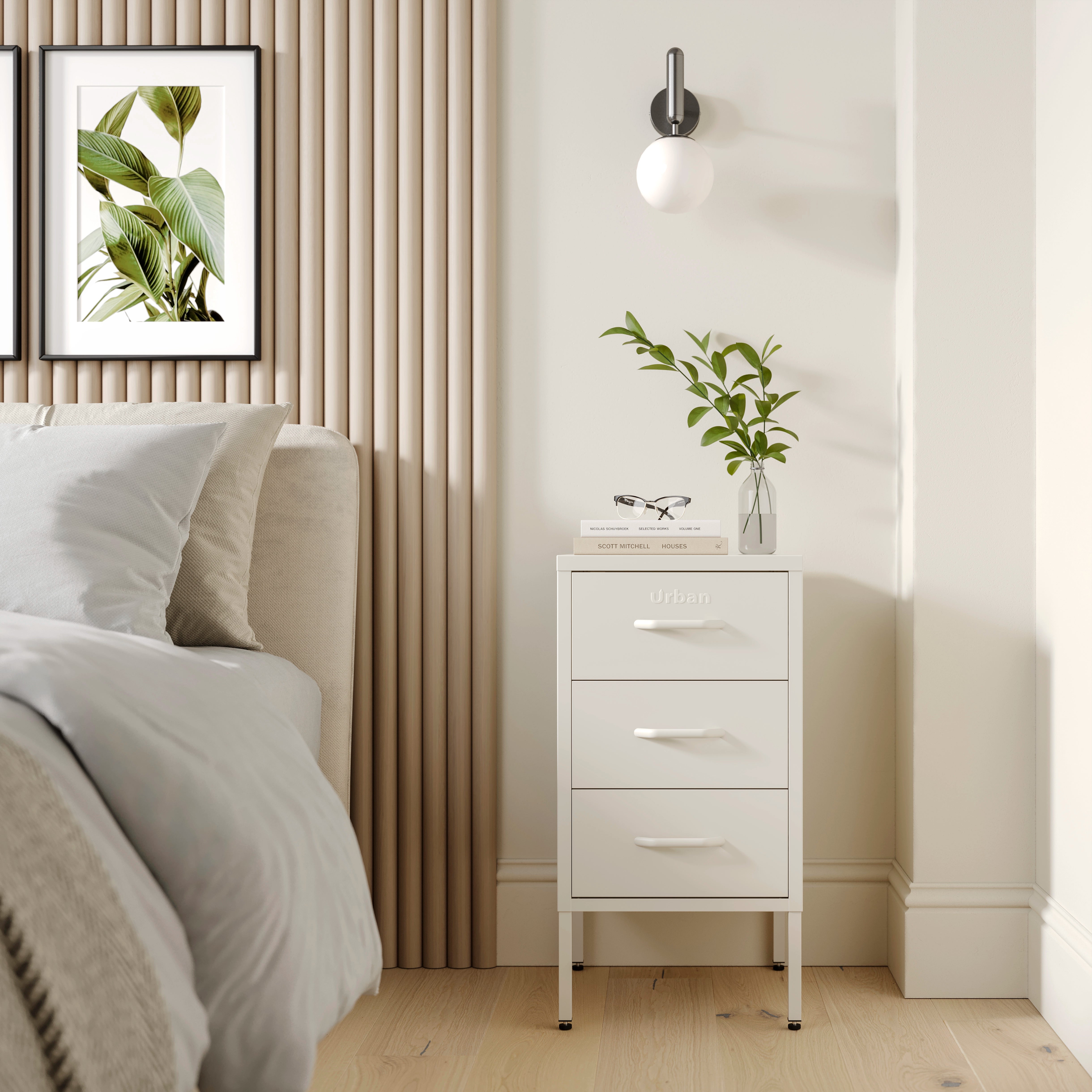 The Vanilla Richmond metal drawer locker combines a fresh, pastel tone with practical storage. Perfect for offices, bedside use and more, this three-drawer locker offers convenient storage in any setting. Whether styled as a modern bedroom drawer locker or a sleek office storage unit, this vanilla locker adds a touch of charm to any space.